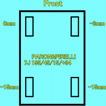 (Wheel F:7.5J/16 R:8J/16 Tyre FR:195/45/16 がかっこいいな。)