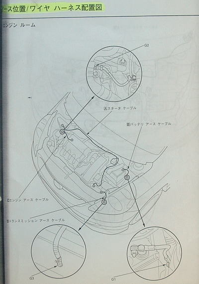 バッテリーアース・エンジンアース・トランスミッションアースの純正 計3ヶ所。