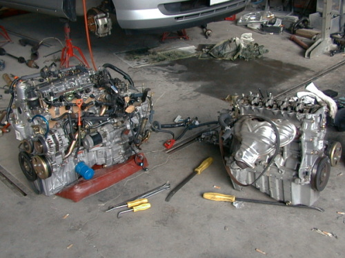 エンジンとミッションのドッキング部分やエンジンマウント部を作る必要があるならば載せ替えは断念していたところです。