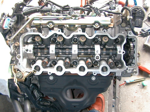 中途半端な画像ですが、ハイカムの組み付け。ロッカーアームASSYをこの後取り付けます。一番苦労しました。