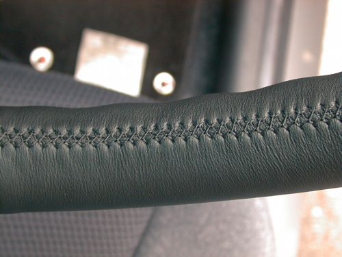 私とこはWタイプですので純正ハンドルは本革巻仕様ですが、グレーの色目をブラックにしたかったので革の上からさらに革を巻きました。 ハンドル交換では万が一のときのエアバッグが使えないので、どうしても純正ハンドルで「純正にないカラーにしたい。」や「本革仕様にしたい。」という方にはお勧めです。 (うっとこもハンドル交換は”NG”ですから。)