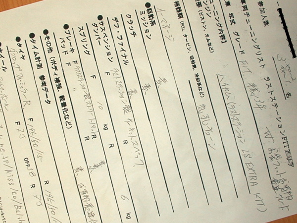 この撮影の前に短パンT−シャツ姿の市嶋さんとしゃべっていてボディーの話になったんですが、レース屋さんから見てもフィットのボディーや足周りの構造等かなり評価高いようでした。